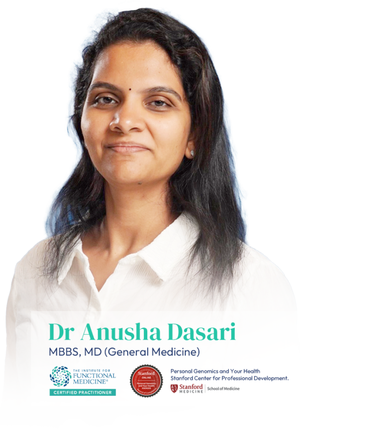 Dr. Anusha Dasari brings years of experience in the medical field, combining expertise in Precision and Functional Medicine to provide patient-centered care.